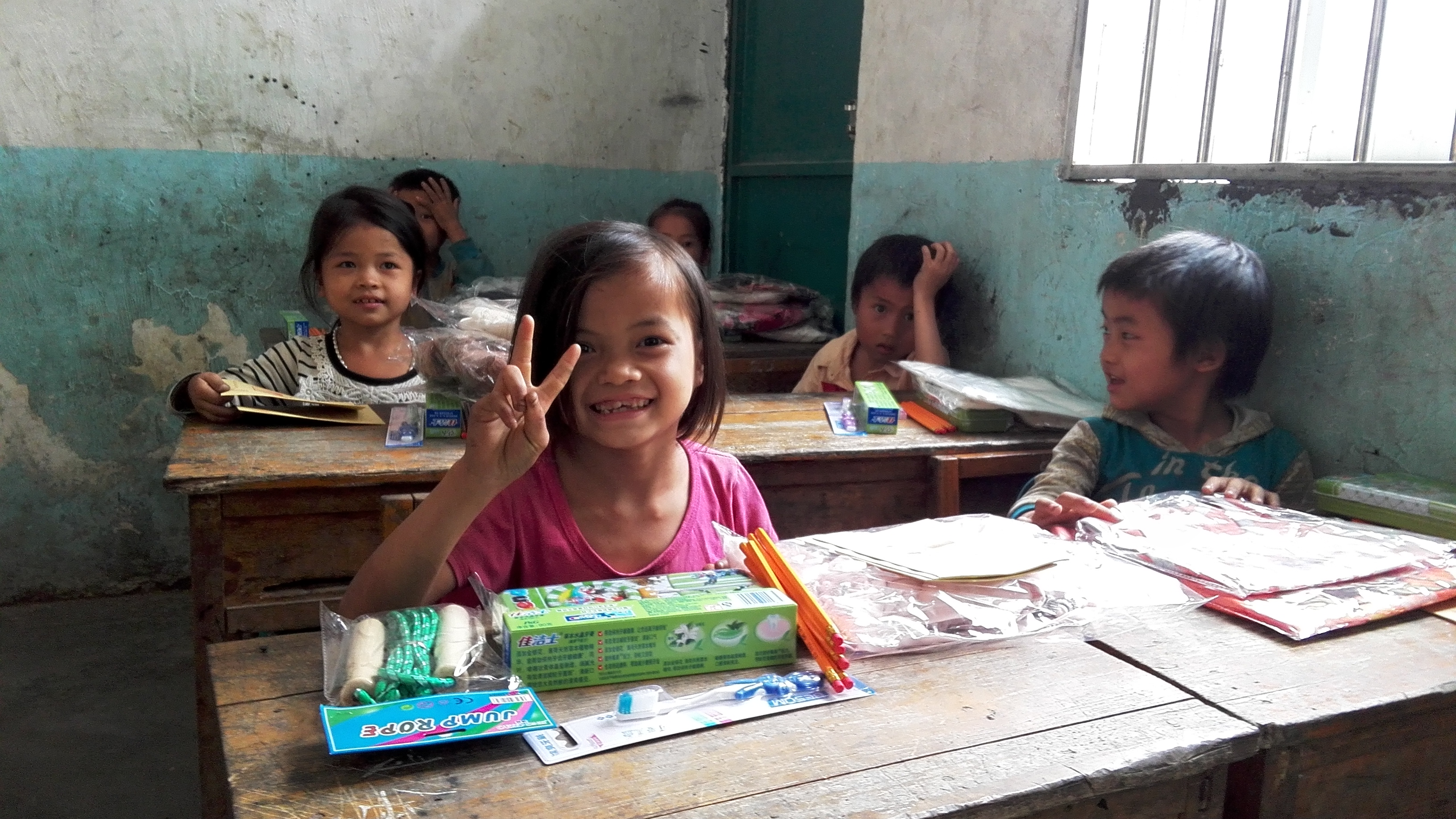 图4:孩子们开心的对着我们的镜头比V~