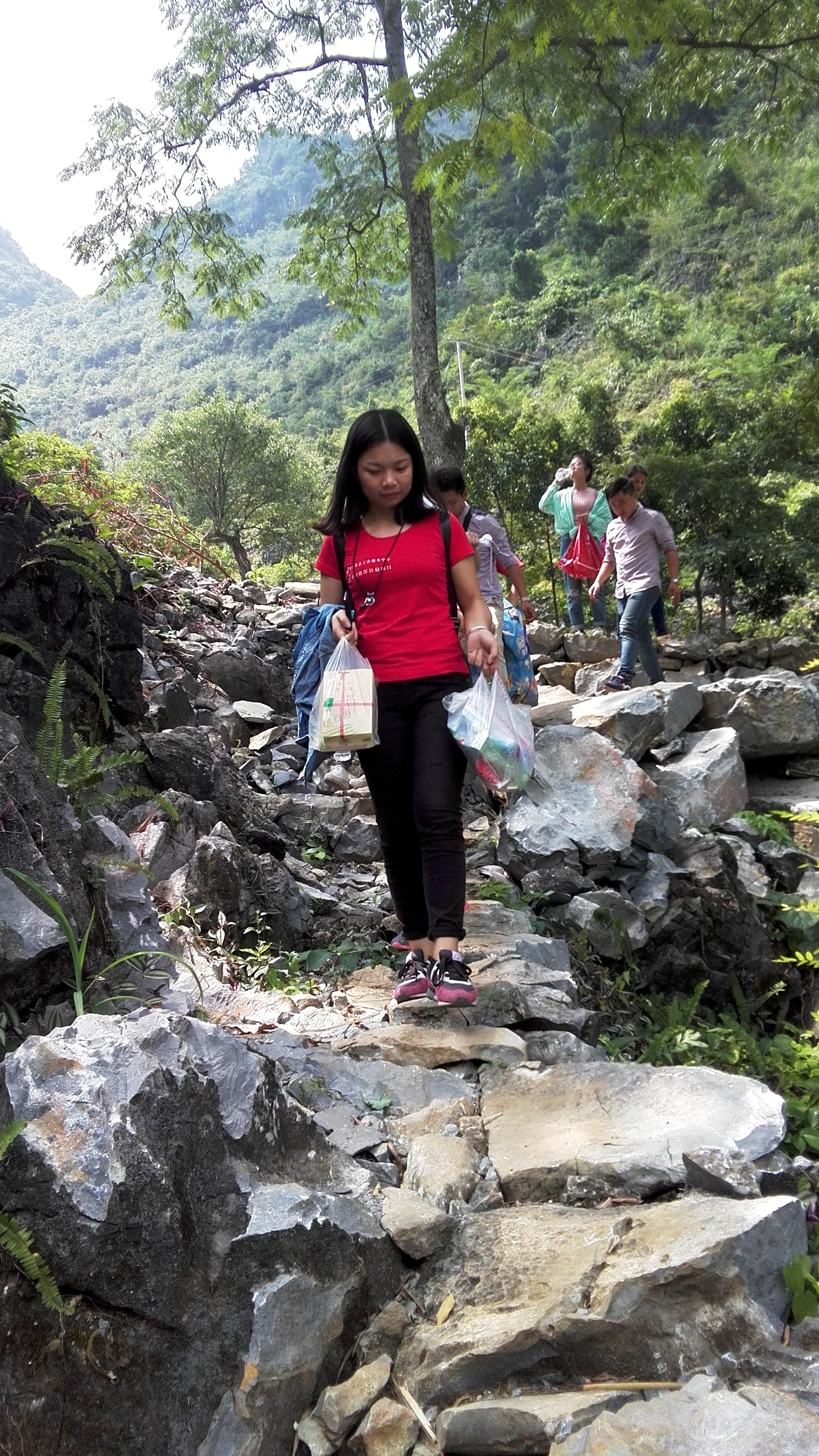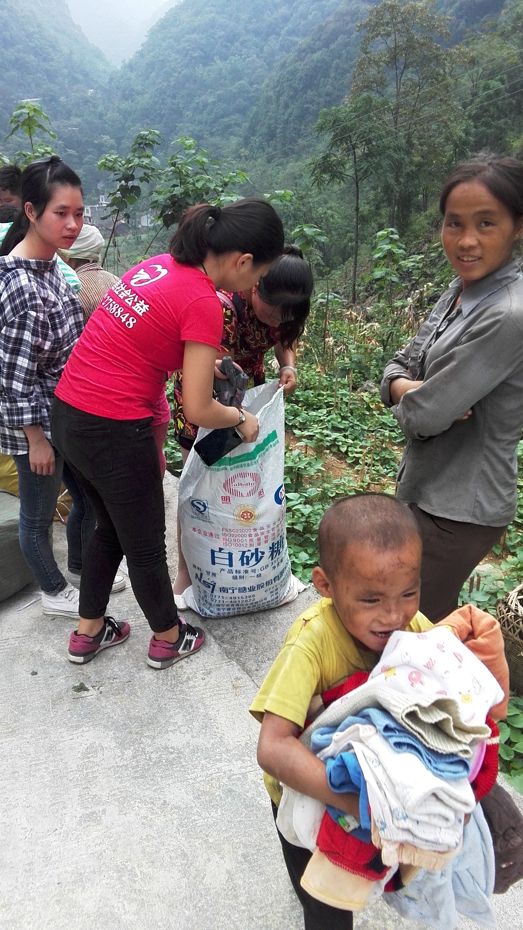 怀揣着满满的公益之心,带着衣物、生活用品、学习用具、书籍等爱心物资,爱心人士来到大瑶山中的雅龙乡。雅龙乡地处大石山区,自然条件恶劣,全乡耕地面积14520亩,人均耕地不足一亩,农业后备资源匮乏。因为贫穷,各个村屯的村民均以玉米为主食,很少能吃上大米,逢年过节才能吃上一餐肉;村屯之间距离较远,交通不便,村落里的生活设施比较差,手机都无法接收到信号,村民也没有手机,一个村子仅有几户人家有座机电话可以与外界联系,在这里,想用手机及时联系到一个人是一件极其困难的事情。