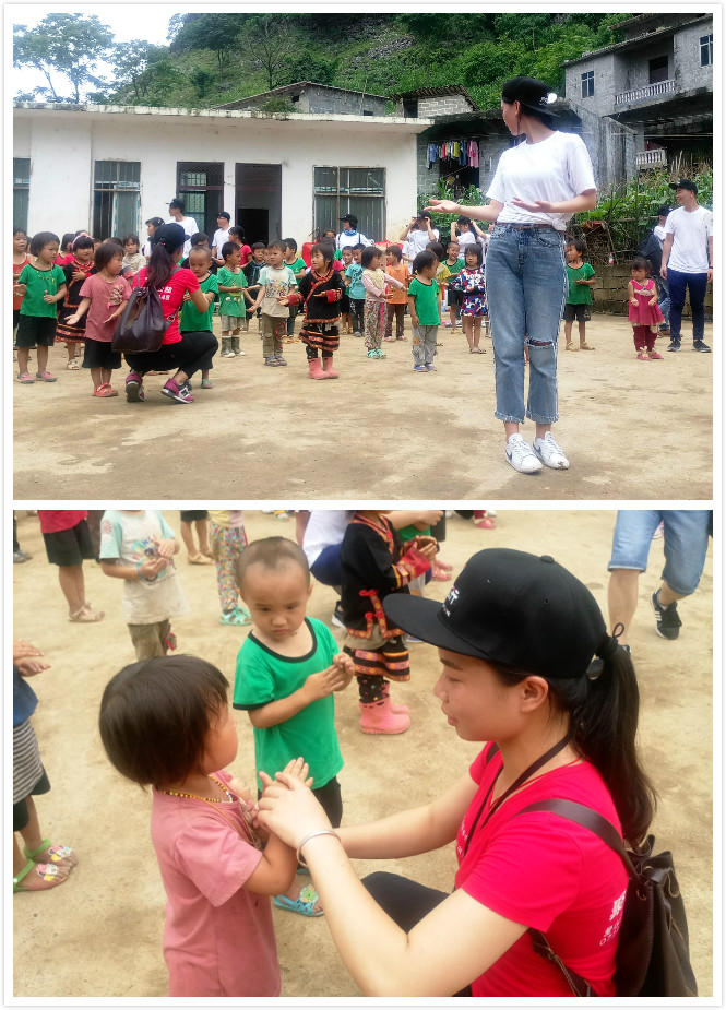 深度空间装饰集团及爱心人士们在教孩子们跳《快乐崇拜》、玩游戏,其乐融融