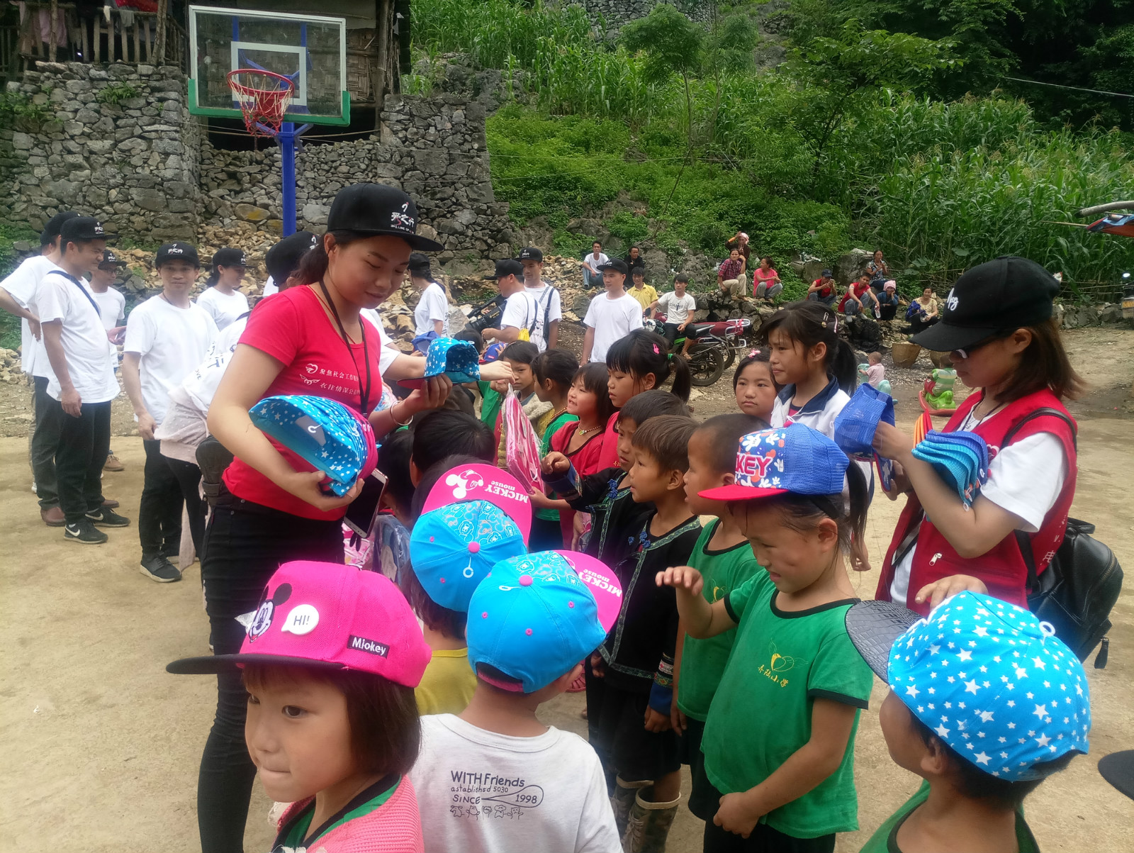 爱心队伍到达学校之后,立即组织发放爱心物资,把爱心送到每一个孩子的手里。