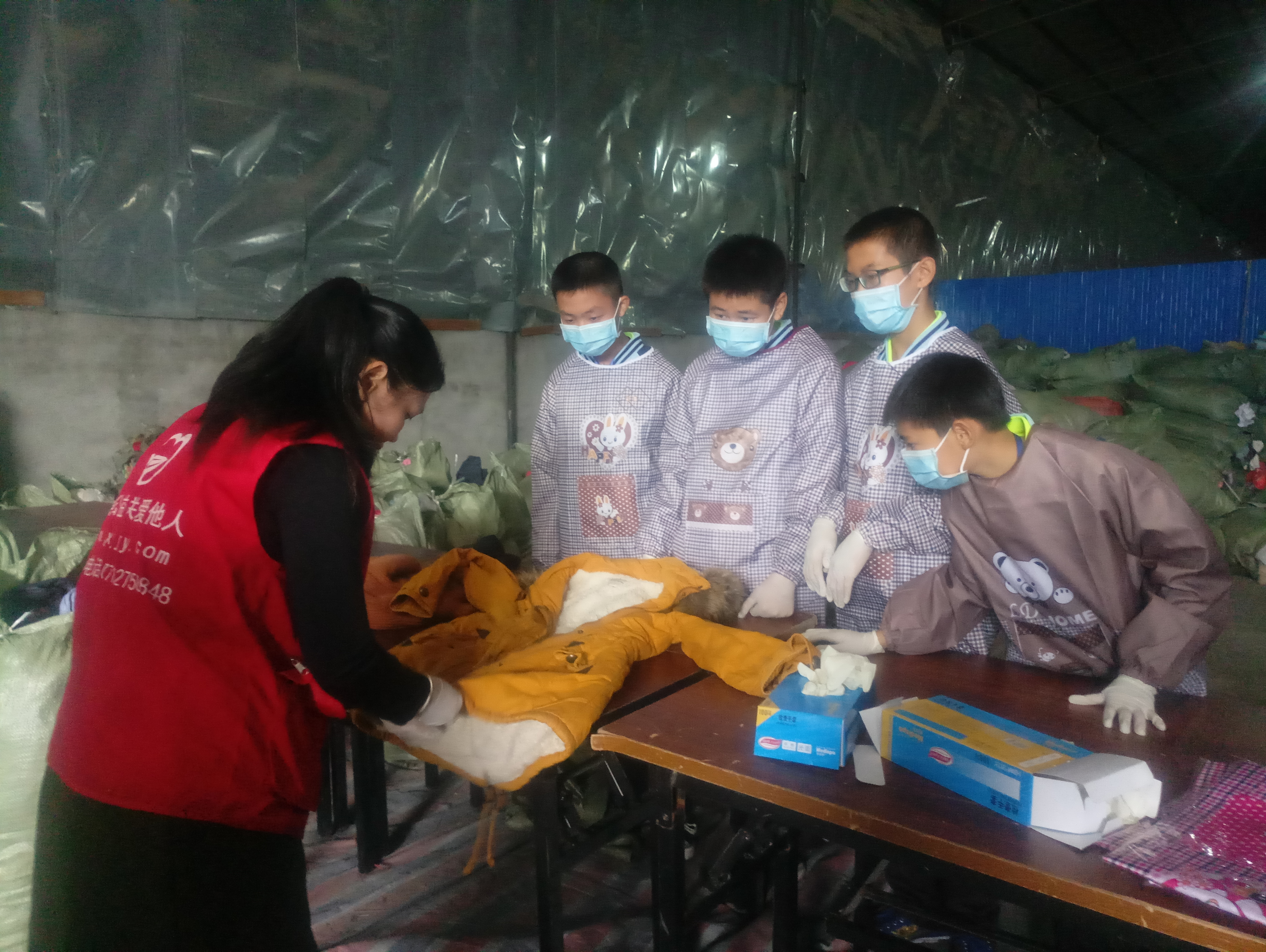 活动现场热火朝天。在同学们的努力下,共分拣整理出10余袋爱心衣物